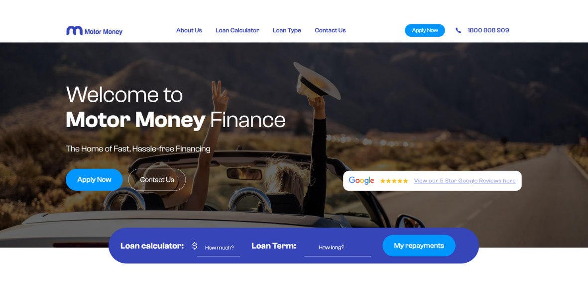 Motor Money is a finance brokerage offering fast personal and business loans for cars, bikes, boats, caravans and equipment.